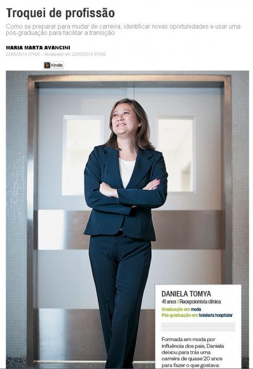 Primeiro, a paulistana Daniela Tomya entrou na faculdade de psicologia, porque achou que era sua vocação. Abandonou o curso no início e fez graduação em moda, por influência de seus pais, donos de uma confecção. Depois de trabalhar quase 20 anos na área, sua carreira não avançava. Ela estava insatisfeita. “Não gosto de moda. Não sei desenhar, não me sinto confortável no ambiente”, diz. A frustração veio quando ela percebeu que nunca seria mais que assistente de estilista ou de produção. Até que chegou ao ponto em que não era mais possível continuar. Decidiu então, aos 38 anos, mudar de carreira.