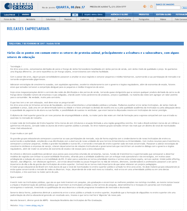 O maior grupo educacional do Brasil tem mais alunos do que o total de matriculados no ensino superior público e privado há vinte anos atrás. Os doze maiores grupos educacionais já estão quase concentrando a metade de todos os discentes. Hoje, dependendo de onde você mora ou trabalha, você entra em uma universidade pública ou em uma destas Instituições, e isto acontece na maior parte do país.